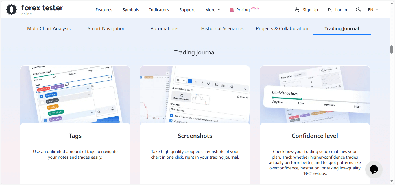 Forex Tester is the go-to platform for traders who want backtesting and journaling in one place.